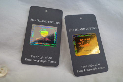 ときおり弊社や日本の海島綿協会に対して、海外で手に入れた「海島綿生地」で製品を作ったので下げ札が欲しいというご依頼が来ますが、トレーサビリティが確認できないためお断りしています。同様の理由で海外のロゴマークを付けた製品に海島綿が使用されているかどうかの保証もしていません。