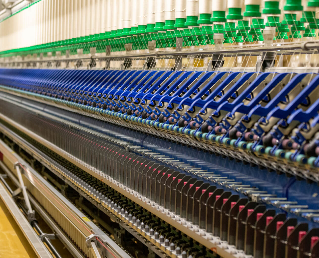 A portion of the electricity used in these spinning mills is CO₂-free. Sea Island cotton yarn is produced using locally generated renewable energy, reflecting a commitment to environmentally responsible manufacturing.